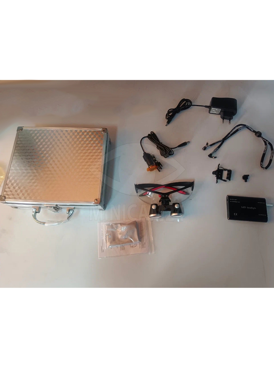 Бинокулярные лупа очки с подсветкой 3.5х, серебряный кейс